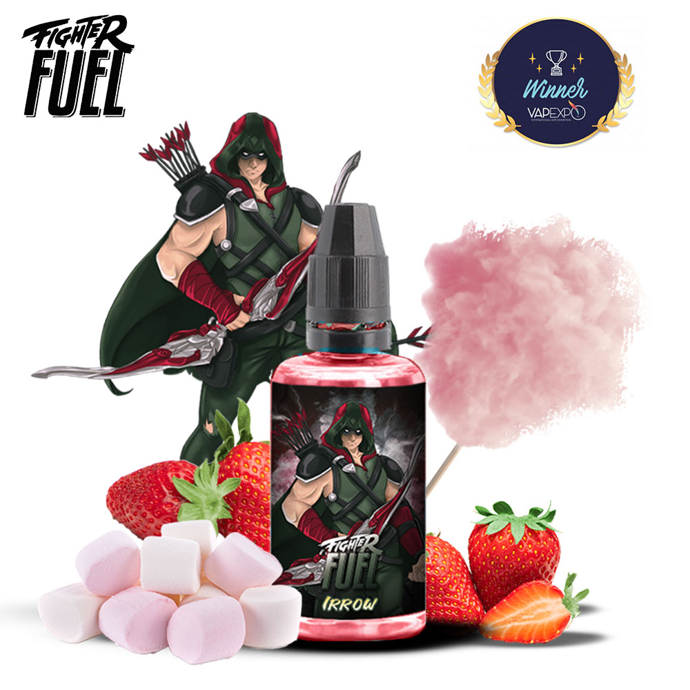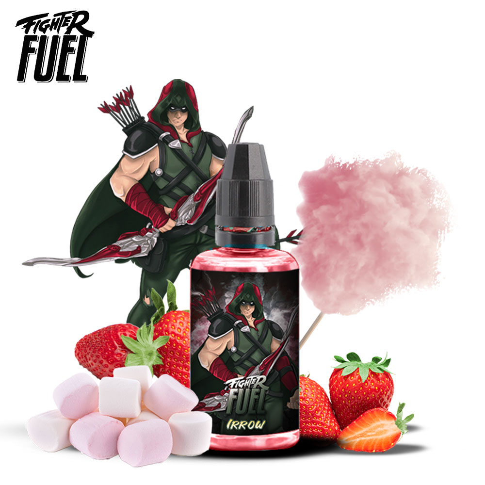 Avec une précision implacable, l’archer de la team Fighter Fuel va décocher une flèche dans votre cœur de vapoteur ! Le concentré Irrow 30ml Fighter Fuel est une composition qui saura assouvir vos envies de gourmand et de fruité en un seul e-juice. Une fraise juteuse enveloppée dans un nuage de marshmallow et sublimée par une touche aérienne de barbe à papa vous donnera des frissons de plaisir. Cet arôme Fighter Fuel a remporté la 3ᵉ place du meilleur e-liquide fruité à la Vapexpo 2025 ! Votre Maison Fuel vous propose cet arôme DIY à l’achat dans un flacon de 30ml. Le taux de dilution est de 8% dans une base neutre en 50PG/50VG. Votre fournisseur conseille un temps de steep de 7 jours minimum pour profiter de toutes les saveurs de cet excellent concentré pour cigarette électronique.