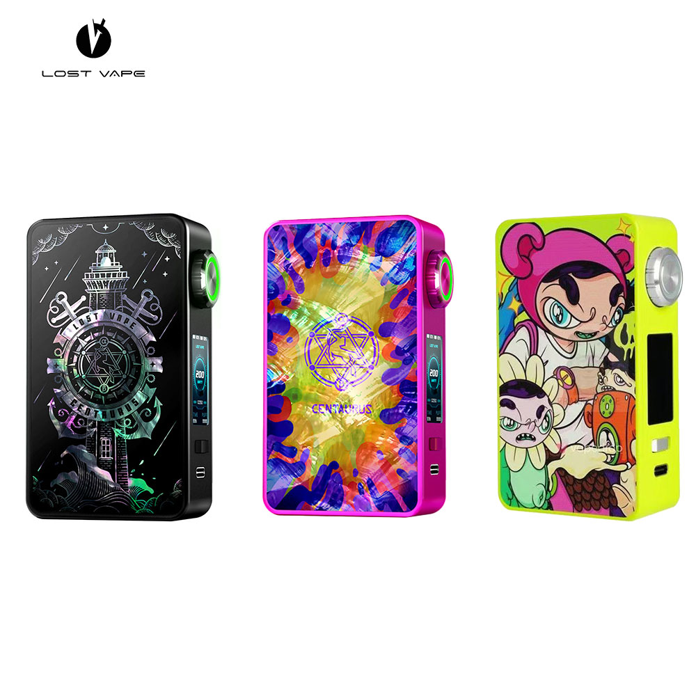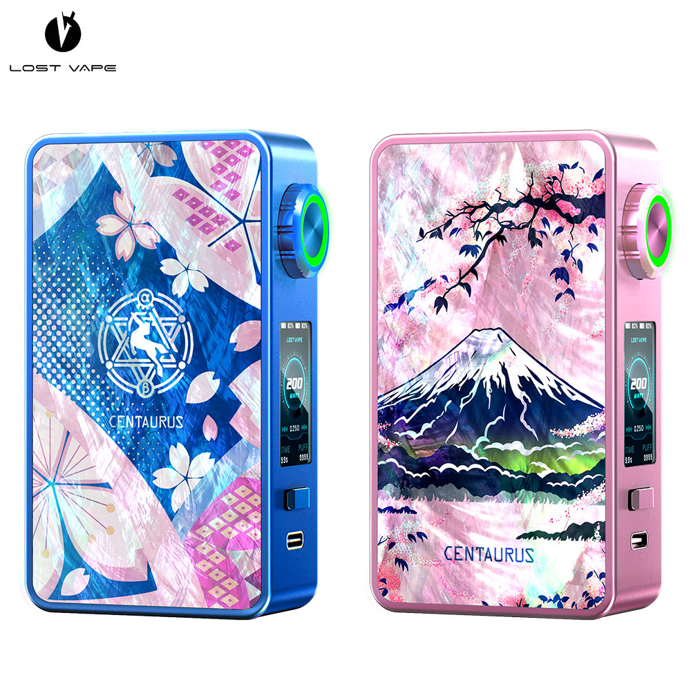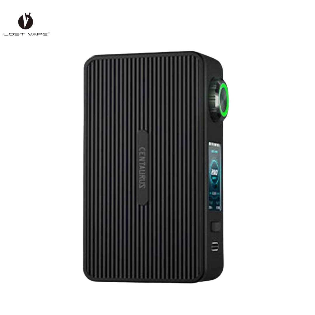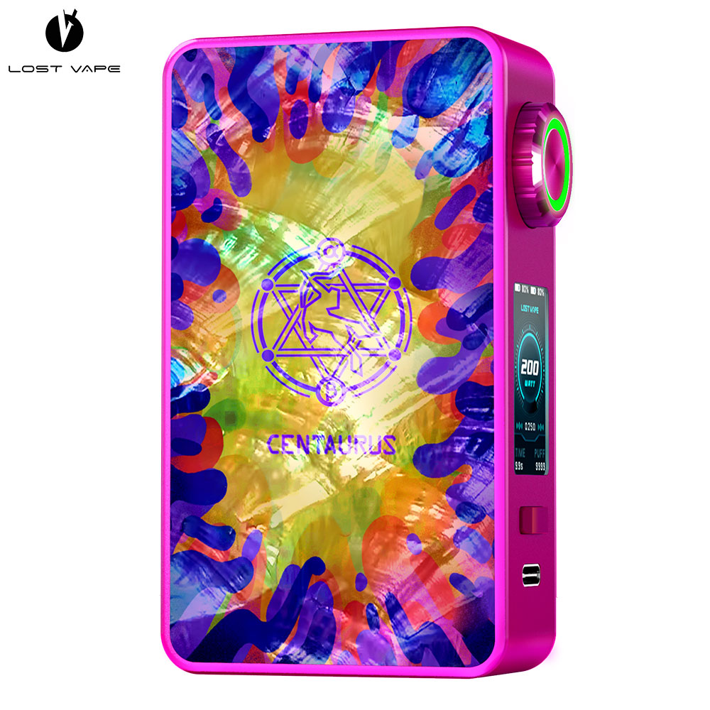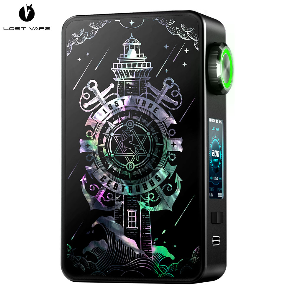 Lost Vape nous dévoile une box incroyable, encore ! Voici la Box Centaurus M200 LostVape , cette box au look fantastique mêlant design futuriste et rétro avec de sublimes gravures. Elle est fabriquée d’un alliage d’aluminium et d’acier inoxydable. Légère avec 152g au compteur, elle risque de vous plaire avec son excellente ergonomie. Équipée du Chipset Quest 2.0 (propriétaire), elle peut délivrer une puissance allant jusqu’à 200W en utilisant deux accus 18650 (non fournis). Cette box introduit une molette au niveau du switch qui remplace les boutons classiques pour faire vos réglages et également d’un bouton de verrouillage de la box. Elle possède un écran couleur de 0.96 pouce pour afficher la puissance, l’état de charge des accus, le voltage … Pour vous gâter encore plus, les portes sont interchangeables et Lost Vape a prévu d’autres portes qui sortiront par la suite. Avec son diamètre de 26mm , elle s’associe avec un large choix d’atomiseurs reconstructibles et de clearomiseurs. Elle est dotée d’un port USB-C avec la charge rapide intégrée. La box Centaurus M200 LostVape est disponible à la vente avec de nombreux coloris. Vous trouverez même les éditions limitées et les New Colors ! Contenu du coffret box Centaurus M200 : 1 x Centaurus M200 Mod 1 x Câble USB type-C 1 x Manuel d’utilisation 1 x Carte de garantie