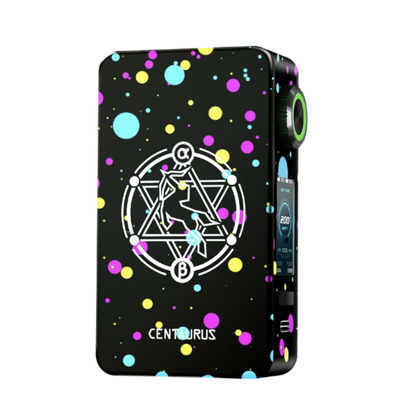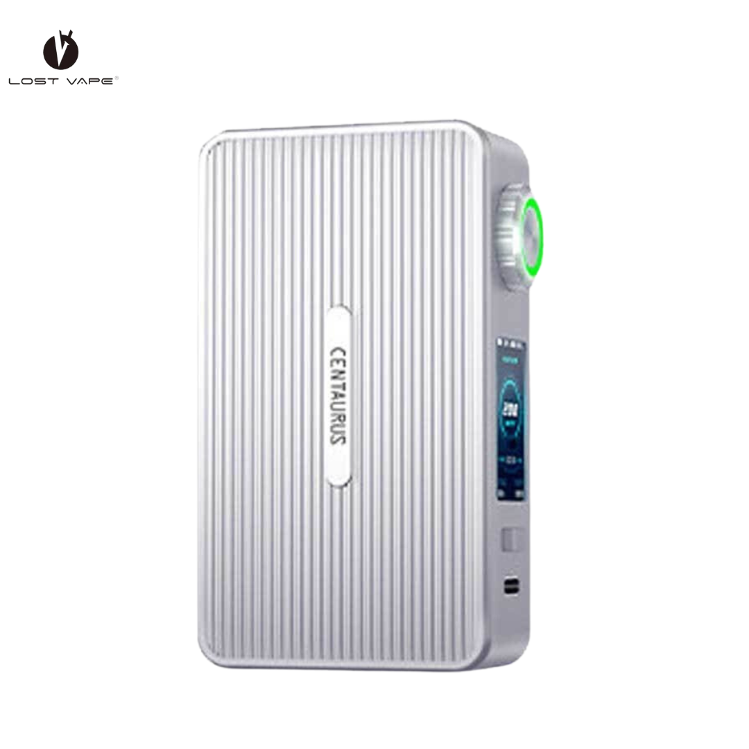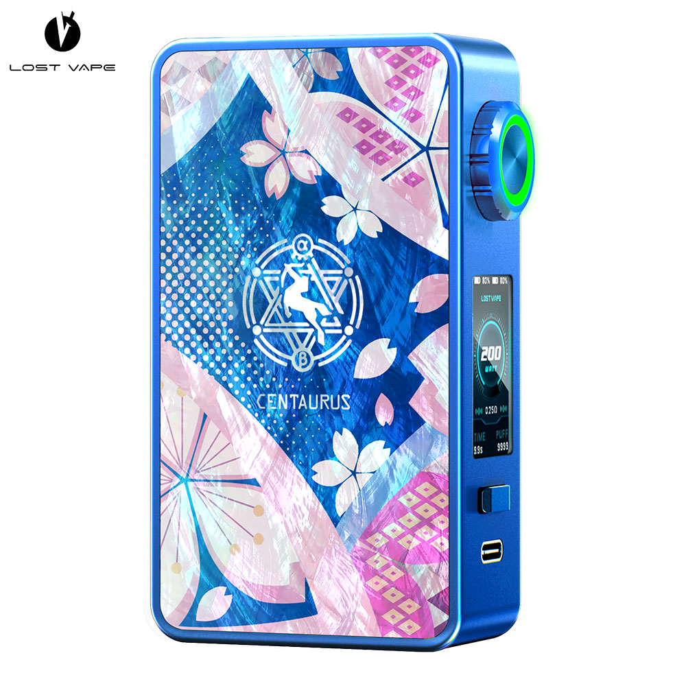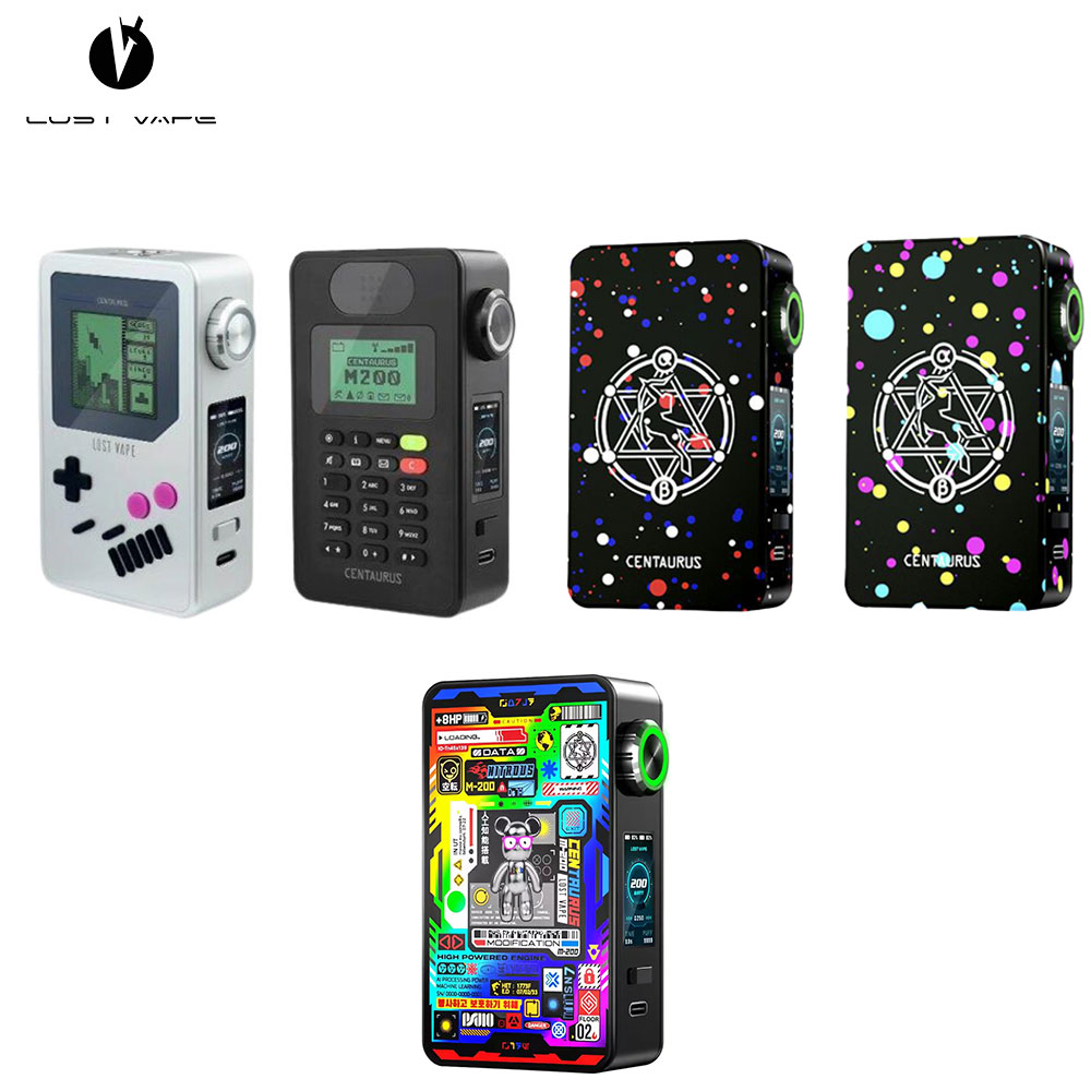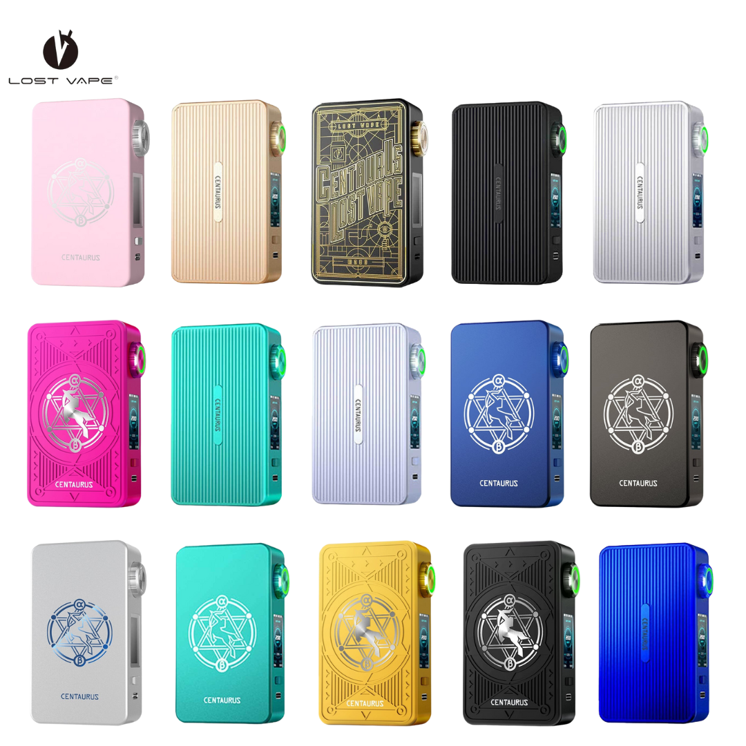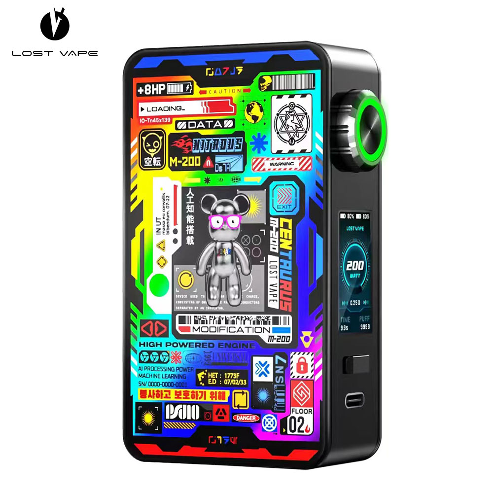 Lost Vape nous dévoile une box incroyable, encore ! Voici la Box Centaurus M200 LostVape , cette box au look fantastique mêlant design futuriste et rétro avec de sublimes gravures. Elle est fabriquée d’un alliage d’aluminium et d’acier inoxydable. Légère avec 152g au compteur, elle risque de vous plaire avec son excellente ergonomie. Équipée du Chipset Quest 2.0 (propriétaire), elle peut délivrer une puissance allant jusqu’à 200W en utilisant deux accus 18650 (non fournis). Cette box introduit une molette au niveau du switch qui remplace les boutons classiques pour faire vos réglages et également d’un bouton de verrouillage de la box. Elle possède un écran couleur de 0.96 pouce pour afficher la puissance, l’état de charge des accus, le voltage … Pour vous gâter encore plus, les portes sont interchangeables et Lost Vape a prévu d’autres portes qui sortiront par la suite. Avec son diamètre de 26mm , elle s’associe avec un large choix d’atomiseurs reconstructibles et de clearomiseurs. Elle est dotée d’un port USB-C avec la charge rapide intégrée. La box Centaurus M200 LostVape est disponible à la vente avec de nombreux coloris. Vous trouverez même les éditions limitées et les New Colors ! Contenu du coffret box Centaurus M200 : 1 x Centaurus M200 Mod 1 x Câble USB type-C 1 x Manuel d’utilisation 1 x Carte de garantie