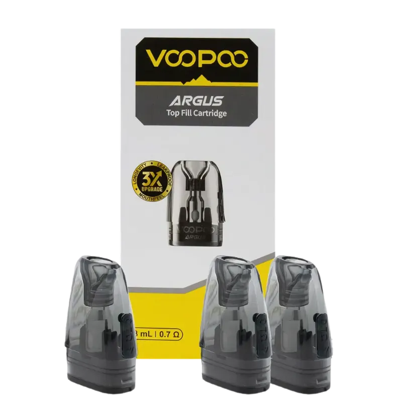 Le pack de 3 cartouches Voopoo Argus Top Fill s’adapte aux pods Argus Klyc, Argus G3 Mini, Argus G3, Argus G2 Mini, Argus G2 et Argus P2. Ces réservoirs jetables de 3ml se remplissent facilement par le haut. Les cartouches Top Fill offrent un réservoir généreux et simple à utiliser. VOOPOO simplifie la vie des vapoteurs ! Disponibles en trois versions : – 1.0 ohm pour 10-14 watts – 0.70 ohm pour 14-18 watts – 0.40 ohm pour 18-30 watts