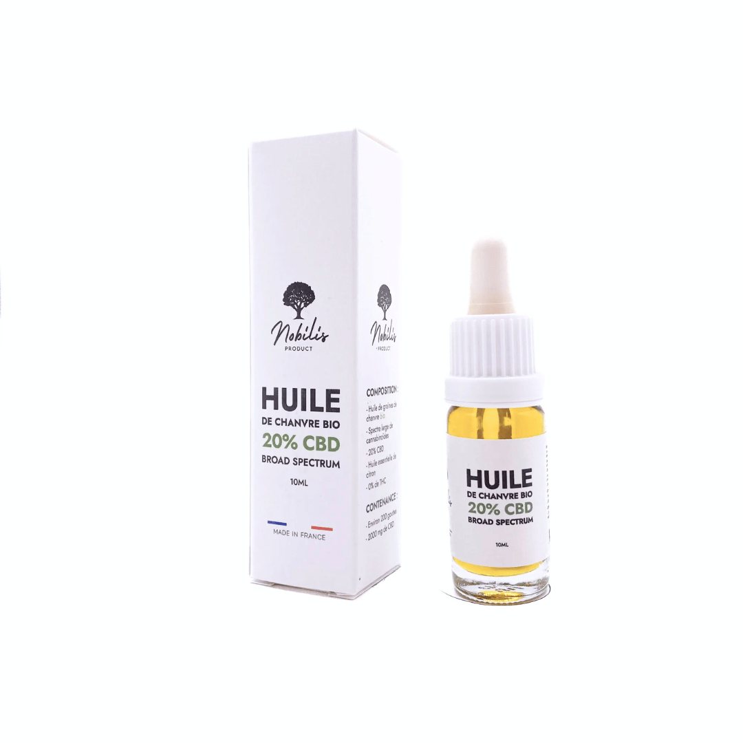 •	Produit : Huile CBD Broad Spectrum 20 % de Nobilis Product, une marque française experte en chanvre.