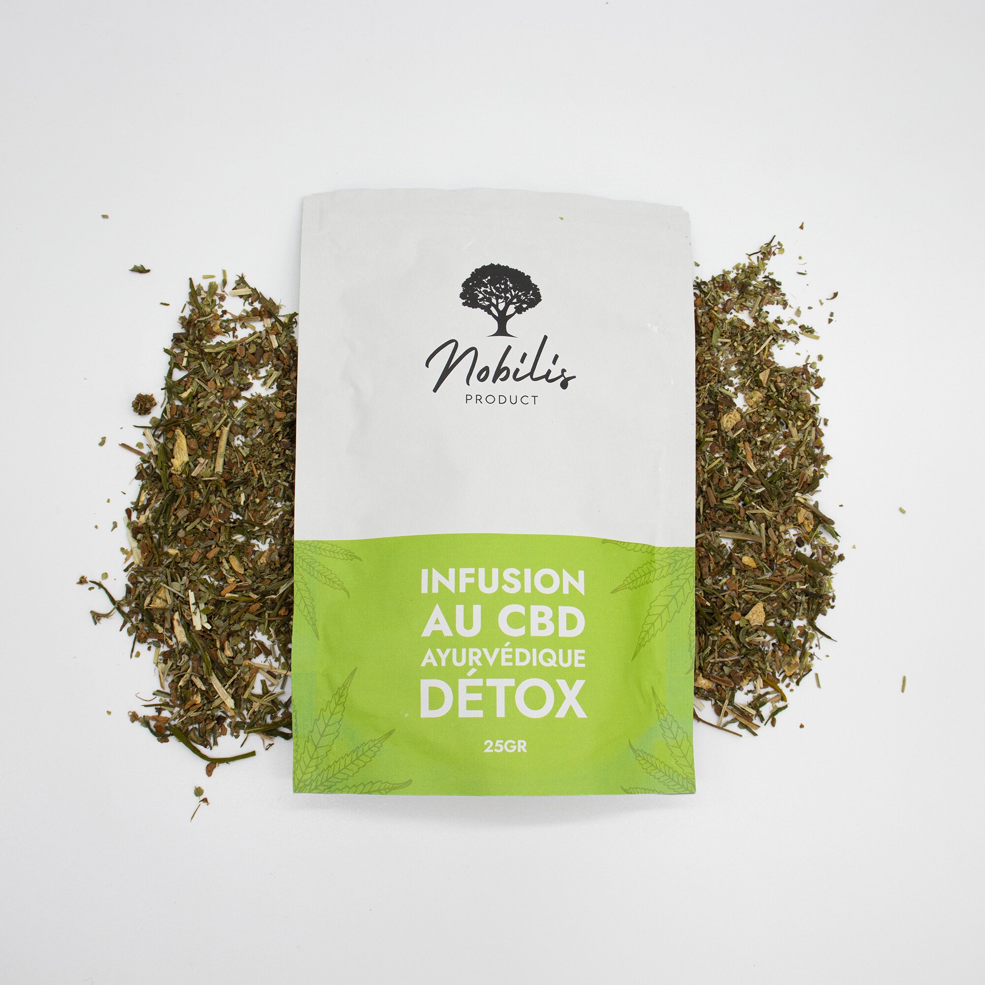 •	Produit : Infusion CBD « Detox » de Nobilis Product, fabriquée en France.