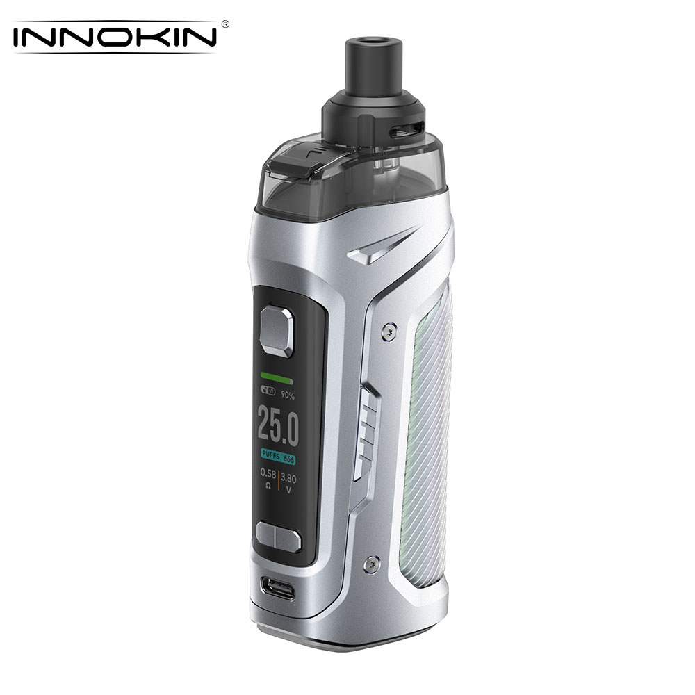 Vous voulez un pod puissant et polyvalent ? Innokin vous propose sa nouveauté ! Le kit Coolfire PZPulse Innokin pourra donner 80W de puissance max et contient une belle batterie intégrée de 2400mAh . Concernant la cartouche, 5.5ml de réservoir vous attendent pour une grande autonomie en e-liquide. Vous êtes un tantinet maladroit ou vous avez un train de vie mouvementé ? Vapez en toute sérénité en profitant de la norme IP68 ! Cette cigarette électronique Innokin résiste à l’eau, à la poussière et aux chocs. Compact et profilé pour une excellente ergonomie, le pod CoolFire PZPulse propose un mode de fonctionnement intuitif et un écran incurvé de 0.96 pouce . Le rechargement se fera rapidement en 2A . Pour plus de praticité, la batterie dispose un bouton Lock pour verrouiller votre pod lors de son transport. La cartouche PZPulse propose une belle contenance de 5.5ml . Un remplissage top fill ainsi qu’un top airflow sont des atouts pour bénéficier d’une vape sans fuite ! Les résistances compatibles sont les nouvelles résistances PZP Max. Disponibles avec 3 valeurs en 0.2 ohm (60-80W), 0.4 ohm (40-60W) et 0.6 ohm (20-24W), la vape RDL et DTL sont mises sur un piédestal. Le prix du pod PZPulse est disponible Innokin France. Proposé avec 5 coloris sublimés, lequel a fait fondre votre cœur ? Contenu du kit : 1 batterie Coolfire PZP 1 cartouche PZPulse 1 résistance PZP Max de 0.2 ohm (60-80W) 1 résistance PZP Max de 0.6 ohm (18-23W) 1 drip tip DTL pré-installé 1 drip tip de rechange de type MTL 1 câble USB-C 1 manuel d’utilisation