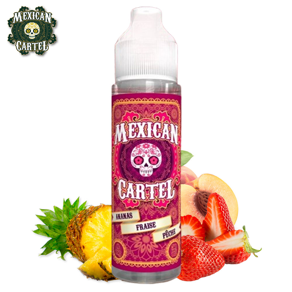 Quelques morceaux de fraise , de belles tranches d’ ananas et de généreux quartiers de pêche , le tout baigné dans un océan de glaçons , il n’en fallait pas plus à nos bandits pour réaliser la recette du siècle ! Devenez complice de leur gourmandise avec le liquide Ananas Fraise Pêche 50ml Mexican Cartel ! Cet e-liquide Mexican Cartel est disponible à l’achat dans un flacon de 75ml de contenance, rempli à hauteur de 50ml d’e-liquide. Le taux de PG/VG est désormais en 50/50 pour être compatible avec un max de cigarettes électroniques.