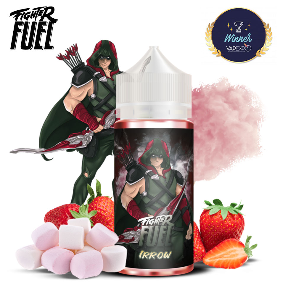 Avec une précision implacable, l’archer de la team Fighter Fuel va décocher une flèche dans votre cœur de vapoteur ! L’ e-liquide Irrow 100ml Fighter Fuel est une composition qui saura assouvir vos envies de gourmand et de fruité en un seul e-juice. Une fraise juteuse enveloppée dans un nuage de marshmallow et sublimée par une touche aérienne de barbe à papa vous donnera des frissons de plaisir. Cet e-liquide Fighter Fuel a remporté la 3ᵉ place du meilleur e-liquide fruité à la Vapexpo 2025 ! Votre Maison Fuel vous propose cet e-liquide à l’achat dans un flacon de 120ml de capacité, rempli de 100ml d’e-liquide, sans nicotine. Votre fournisseur indique un taux de PG/VG en 30/70 pour une excellente vape DTL.