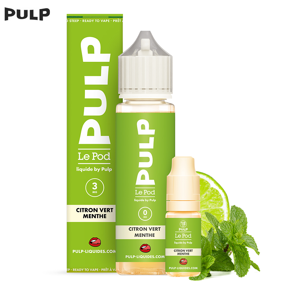Besoin d’un e-liquide grand format qui est vendu avec des boosters de nicotine aromatisés ? Choisissez la qualité des packs Pulp ! Le Pack Citron Vert Menthe 60ml Le Pod Liquide Pulp sera parfait pour vous rafraichir le clearomiseur. Une limette chaleureuse et gorgée de soleil qui accompagne une menthe verte hyper réaliste pour un soupçon de végétalité. Comme un Mojito tiré à quatre épingles, mais sans alcool. Le pack Pulp est disponible à l’achat en 2 versions : Pack Pulp en 3mg : un flacon rempli de 50ml d’e-liquide sans nicotine + 1 booster aromatisé en 20mg de nicotine base. Pack Pulp en 6mg : un flacon rempli de 40ml d’e-liquide sans nicotine + 2 boosters aromatisés en 20mg de nicotine base. Obtenez facilement 60ml d’e-liquide nicotiné ! Votre fournisseur vous indique un taux de PG/VG de ce classique de la vape en 50/50 pour être compatible avec de nombreuses cigarettes électroniques.