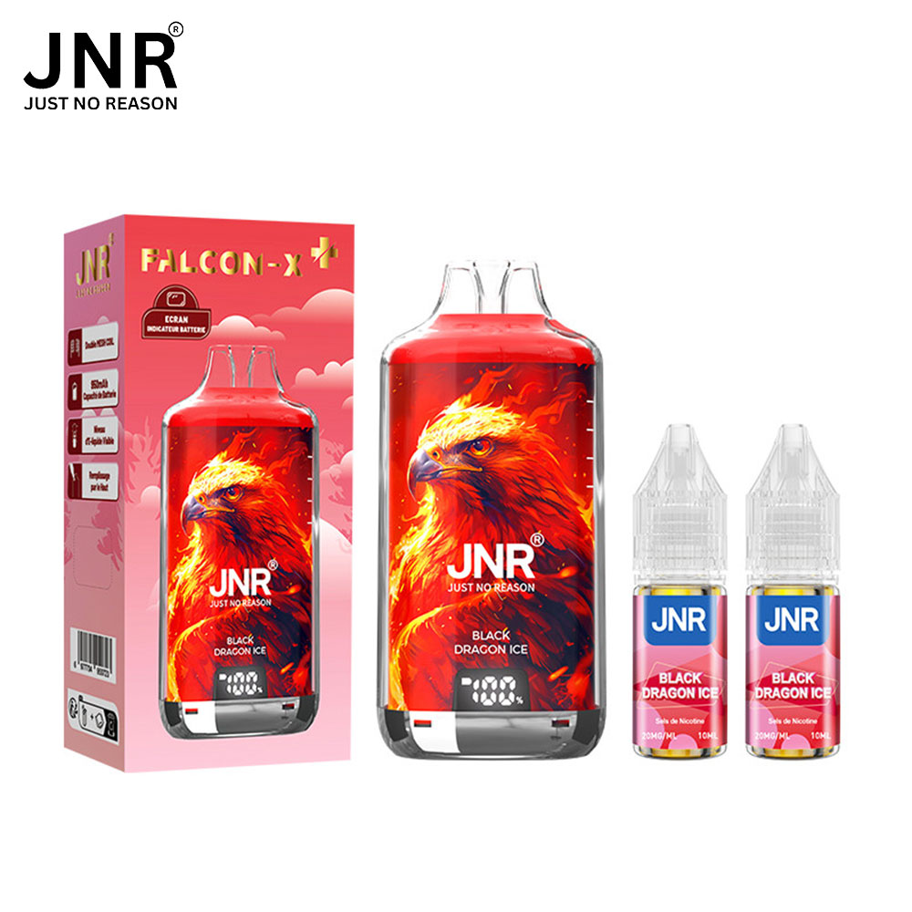 • Spécifications de la batterie : Batterie rechargeable de 950 mAh, délivrant jusqu’à 28 000 bouffées. • Spécifications du réservoir : Réservoir de 2 ml pré-rempli avec deux fioles supplémentaires de 10 ml de saveur Black Dragon Ice. • Spécifications de la résistance : Résistance dual mesh de 1,2 ohm.